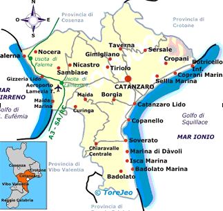 Andali, Albi, Amato, Amaroni, Argusto, Badolato, Belcastro, Borgia, Botricello,Catanzaro, Caraffa, Cardinale, Carlopoli, Cenadi, Centrache, Cerva, Chiaravalle Centrale, Cicala, Conflenti, Cortale, Cropani, Curinga, Davoli ,Decollatura,Falerna, Feroleto Antico, Fossato Serralta,Gagliato, Gasperina, Gimigliano, Girifalco, Gizzeria, Guardavalle, Isca Sullo Jonio, Lamezia Terme ,