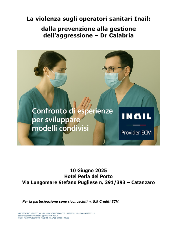 La violenza sugli operatori sanitari Inail: dalla prevenzione alla gestione dell’aggressione LOCANDINA E PROGRAMMA